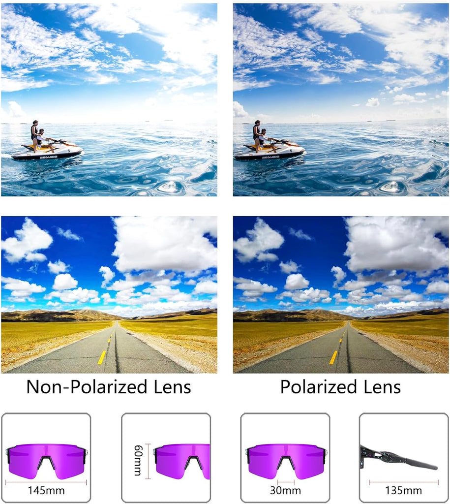 - PC LIGHTWEIGHT DESIGN: Our sports sunglasses made of durable frame and pc polarized lens lightweight design that you can’t feel you was wearing it.