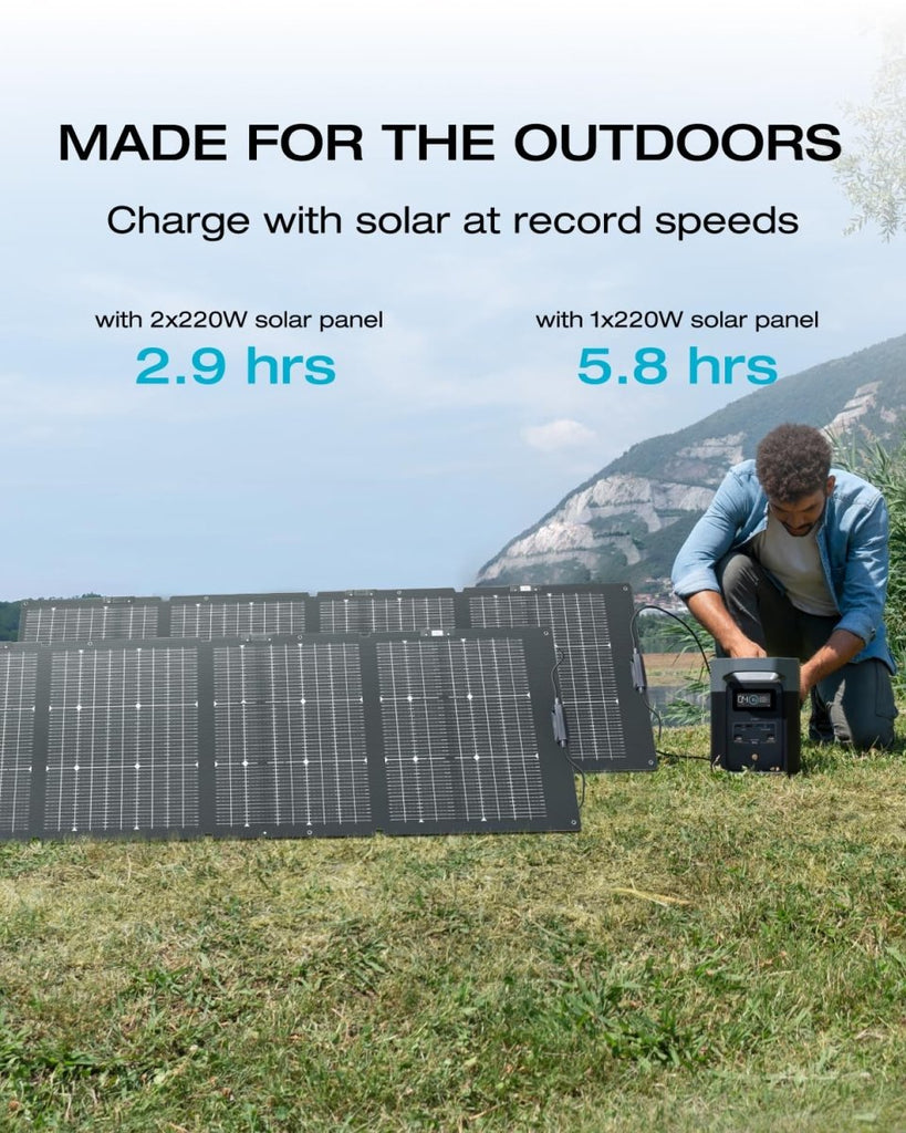 - Clean, Green Charging. With up to 500W of solar panel input, DELTA 2 is a solar generator that can be charged while camping, on an RV trip or off-grid.
