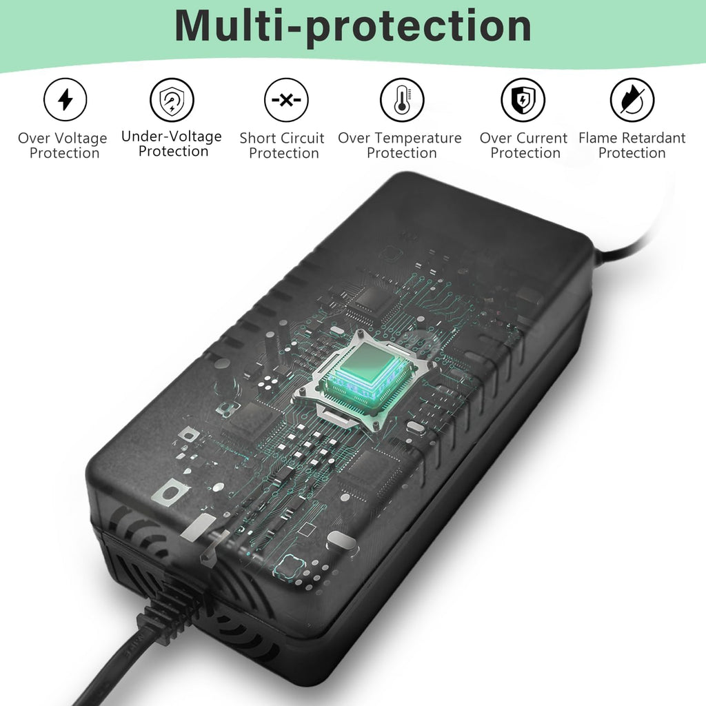 Universal 7-in-1 charger with built-in DC plug and multiple adapters for wide compatibility. Delivers 54.6V / 2A fast charging for 48V (13S) lithium-ion batteries.